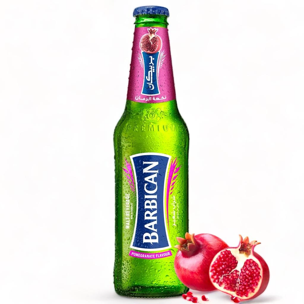 Non-alcoholic malt beverage with bright pomegranate flavour and gentle carbonation—best served ice-cold. Includes twenty-four 330 ml glass bottles (7.92 L total), ideal for retail fridges, cafés, and events. Store cool and dry; refrigerate before serving. Ingredients & allergens: see bottle (contains barley malt).